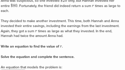 Learn how to determine the appropriate *type* of modeling equation (or inequality) according to the description of a real-world context.