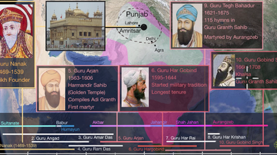 Guru Nanak begins a movement focused on devotional love of God. It develops in a context of emerging Mughal rule. Forged by bouts of persecution by the Mughal Emperors, it develops a martial culture with the goal of fighting oppression.