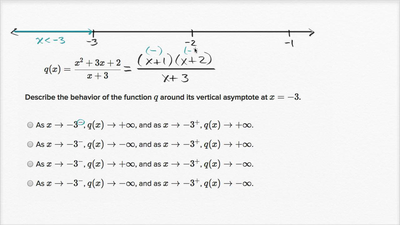 Learn about the ways in which rational functions behave when their denominator is equal to zero. This gets interesting when vertical asymptotes are involved! Learn how to determine this behavior for any kind of rational function.