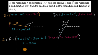 Learn how to add two vectors together that are in magnitude and direction form. We can always use our old friend component form!