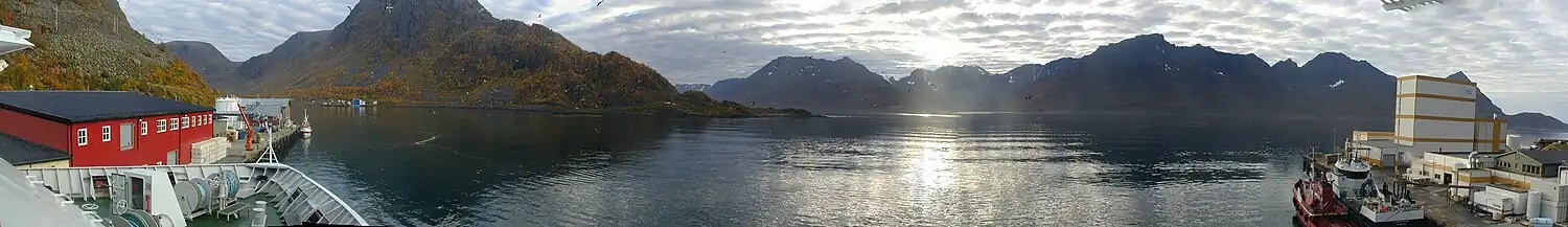 Øksfjord (Norwegian), Ákšovuotna (Northern Sami),[3] or Aksuvuono (Kven) is the administrative centre of Loppa Municipality in Finnmark county, Norway. The village is located on the east side of the Øksfjorden, just south of the mouth of the fjord. Øksfjord Church is located in the village. The village has one café and one pub, as of 2015.[4] The village of Øksfjordbotn lies about 20 kilometres (12 mi) to the southeast, near the border with Alta Municipality.