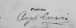 Ángel Canaveris was born in Italy,[3] probably in the city of Genoa, on one of the trips made in Europe, by his parents Juan Manuel Canaveris and Carmen Gutiérrez, belonging to a distinguished family.[4]