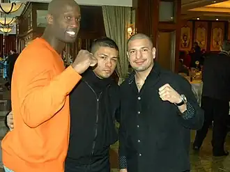 Carl Davis, Angel Hernandez and David Estrada at a benefit for injured and retired boxers in 2010