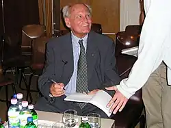 His most famous translation work is J. R. R. Tolkien's The Lord of the Rings trilogy.[42] Initially, art critic Ádám Réz began to translate The Fellowship of the Ring, however after the translation of eleven chapters (texts and poems), the main terms and concepts, he stopped the work because of his increasingly severe illness. Réz died in 1978 and his manuscript remained unfinished for the next few years. Göncz later took over the project, working on the prose in Tolkien's novel, while the poems and songs were translated by Dezső Tandori. Finally, the work was published by Gondolat Kiadó in 1981, for the first time in Hungary.[43] In January 2002, Göncz was present at the Hungarian premiere of the movie adaptation of The Fellowship of the Ring.[44]