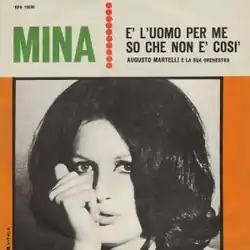 "È l'uomo per me" (English: He's a man to me) is a song by Italian singer Mina. The song is an Italian-language cover of the song "He Walks Like a Man" (1964) by American country singer Jody Miller. The music was written by Diane Hildebrand, and the Italian lyrics was written by Gaspare Gabriele Abbate and Vito Pallavicini.[1] The song was released as a single and reached the top of the Italian chart, spending seven consecutive weeks at number one.[2] The song "So che non e così" was used as the B-side.