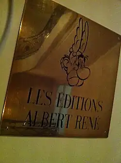Éditions Albert René is a French publishing house created in 1979 by cartoonist Albert Uderzo, two years after the death of his collaborating scriptwriter René Goscinny.[1] The company Lagardère Publishing (via Hachette Livre) owns 100% of the publishing house since 2011.[2] Éditions Albert René control the publication of the Astérix series (from the album Asterix and the Great Divide, 25th album in the series), Jehan Pistolet, Oumpah-Pah and the other joint works of Uderzo and Goscinny.[3][4]