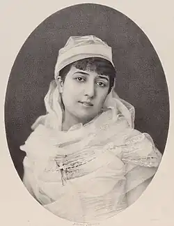 - ^ During her American tours, a variety of fanciful accounts of her parentage and youth in North Africa were published in the local press. These included assertions that she was a "Moorish Italian", that her mother was Arab or half-Arab, that as a young girl Ambre played serenades on the zither and sang to children in the desert, that she was the niece of the "Emperor of Morocco", and that she had an affair with a French diplomat in Algeria but left him for the Khedive of Egypt and when she tired of the Khedive went to France in search of the diplomat, but unable to find him, enrolled in the Marseilles Conservatory instead.[2][3][4]