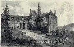 Du Châtelet invited Voltaire to live at her country house at Cirey in Haute-Marne, northeastern France, and he became her long-time companion. There she studied physics and mathematics, and published scientific articles and translations. To judge from Voltaire's letters to friends and their commentaries on each other's work, they lived together with great mutual liking and respect. As a literary rather than scientific person, Voltaire implicitly acknowledged her contributions to his 1738 Elements of the Philosophy of Newton. This was through a poem dedicated to her at the beginning of the text and in the preface, where Voltaire praised her study and contributions.[21] The book's chapters on optics show strong similarities with her own Essai sur l'optique. She was able to contribute further to the campaign by a laudatory review in the Journal des savants.[22]