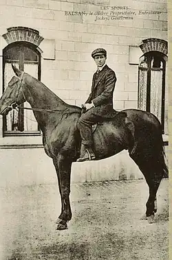 While the Balsan family was a part of the upper class circle, Étienne (and his brother Jacques Balsan) were neither landed gentry nor titled aristocrat.[2] An officer in the cavalry, he renounced his career, to breed horses and participate in races. A polo-player, he owned the estate Chateau de Royallieu (destroyed during World War II) near Compiègne (Oise). The chateau was located near the site of the Prix de Royallieu, a Group 2 flat horse race, which has been active since 1922.