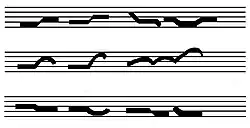 Musicologist Hugo Leichtentritt (1874–1951) describes the three- (and sometimes four-) voice texture thus: "A melody of painful, elegiac expression over a slow, almost sluggish, bass, in-between a winding middle voice [in sixteenth notes] which, despite its narrow range adds a great inner agitation."[5] A characteristic trait of the melody are the chromatic auxiliary notes played on the beat and approached by disjunct motion.[6]
