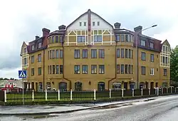 Leipzighuset is a multi-dwelling apartment house located at the corner of Turingevägen / Gamla Huddingevägen in Örby. Built in the early 1900s, the architecture differs from other buildings in Örby and was inspired by German metropolitan architecture from the turn of the 1900s.