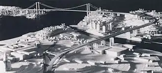 Plans on a road connection using a bridge east of the city centre were part of the early regional plans, and city general plans in 1928 and 1960.[5]
