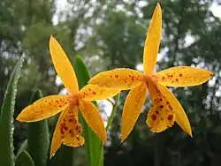| × Potinara Hoku Gem, now renamed × Brassocattleya Hoku Gem, also one of the descendants of Cattleya milleri. | |