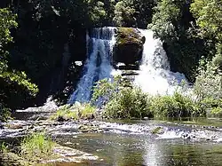 The Āniwaniwa Falls, or Rainbow Falls, are a two-drop waterfall located at northeastern Lake Waikaremoana in New Zealand.[1][2][3]