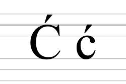 The grapheme Ć (minuscule: ć), formed from C with the addition of an acute accent, is used in various languages. It usually denotes [t͡ɕ], the voiceless alveolo-palatal affricate, including in phonetic transcription. Its Unicode codepoints are U+0106 for Ć and U+0107 for ć.