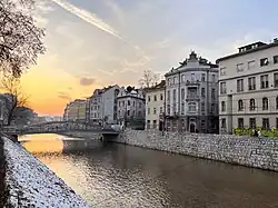 The Ćumurija Bridge in Sarajevo, Bosnia and Herzegovina carries vehicular and pedestrian traffic over the River Miljacka.[1] It was constructed in 1886.