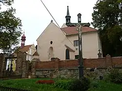 The main landmark is the Church of Saint James the Great, which is situated on a hill above Čížová. The church has a Gothic core and its existence was first documented in 1407.[8] The church is surrounded by a cemetery on which stays the Chapel of Saint Barbara and a historical bell tower. The Chapel of Saint Barbara dates from 1759.[9]