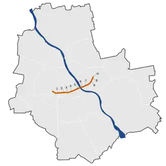 Łazienki Bridge (formerly the Zygmunt Berling Bridge) over the River Vistula is part of the route.[1]