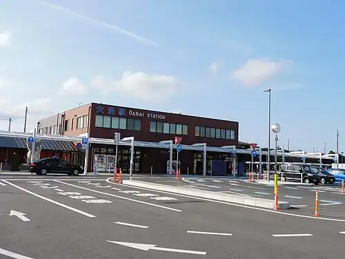 Ōarai Station is served by the Kashima Rinkai Railway Ōarai Kashima Line from Mito to Kashima Soccer Stadium. Located between Tsunezumi and Hinuma Stations, it is 11.6 km from the line's terminus at Mito.[1]