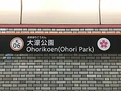 Ōhorikōen Station (大濠公園駅, Ōhorikōen-eki) is a railway station located in Chūō-ku, Fukuoka in Japan. Its station symbol is a Japanese cherry blossom in pink, because many cherry blossom trees are planted near this station.