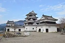 Ōzu Castle (大洲城, Ōzu-jō), also known as Jizōgatake Castle (地蔵ヶ嶽城, Jizō-ga-take-jō), is a castle located in Ōzu, Ehime Prefecture, Japan. The earliest recorded defensive structures date back to the beginning of the 14th century and were supposedly built by Utsunomiya Toyofusa. In 1888, deterioration of the castle keep (天守, tenshu) led to its demolition; it was later rebuilt in 2004 according to traditional construction methods.