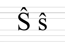 Ŝ is the twenty-third letter in Esperanto orthography. Although it is written as sx and sh respectively in the x-system and h-system workarounds, it is normally written as S with a circumflex: ŝ.