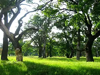 It contains a tall, homogeneous stand of trees which are almost the same age, including about 200 centennial marsh oak trees (Quercus robur), once accompanied by field ash trees (Fraxinus angustifolia). The protected area covers 19 hectares (47 acres).