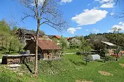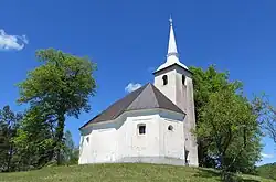 The local church is a chapel of ease dedicated to Saint James and belongs to the Parish of Sveti Vid.[6] The church features a gilded altar from the second half of the 17th century, adorned with some late Baroque additions. The altar was renovated in 1928 by the wood-carver Franc Bečaj from Cerknica. The bell tower, which appears to have been built as a separate structure, is several centuries old and houses a copper bell dating back to 1445. According to oral tradition, the villagers received the bell from Trsat in exchange for rights to a fair held below Kapelšče Hill (770 m) north of the village.[7]
