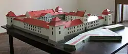 The castle had a typically Serlian entrance arch and was encircled by moats (up to 17 meters in width). One wing of the building accommodated the arsenal and stables; another was immediately contiguous to the city wall. In 1606, a garden was laid out next to the hetman's residence. It contained a menagerie with wisents, deer, and chamois. The palatine chapel was consecrated in 1640.