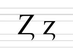 The Unicode standard notes "Middle High German" for the application of the grapheme, intended to represent the coronal fricative /s/ also transcribed as tailed z ⟨ʒ⟩. The ⟨ȥ⟩-character is used in modern printings of Medieval German literature to indicate those cases of ⟨z⟩ pronounced as [s] (in such a case, modern German now uses ⟨s⟩). In contrast, the ⟨z⟩-character is pronounced as /ts/, as is still the case in modern German.[1] And the ⟨s⟩-character is pronounced as /z/.
