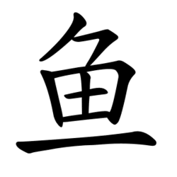 | Japanese Kana: | ギョ gyo / ゴ go (on'yomi) うお uo / さかな sakana (kun'yomi) | |