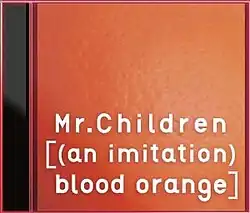 (An Imitation) Blood Orange (stylized as [(an imitation) blood orange]) is the fifteenth studio album by Japanese pop rock band Mr. Children and was released on November 28, 2012.[1] It was the band's first studio album in two years. The album consists of a total of 11 tracks, including their triple A-side single, "Inori: Namida no Kidou" / "End of the Day" / "Pieces", released in April 2012, as well as "Hypnosis". "Joutoku" was used as the theme song for Ikuta Toma's drama Osozaki no Himawari: Boku no Jinsei, Renewal and their charity digital single "Kazoe Uta", released in April 2011, for victims of the 2011 Tōhoku earthquake and tsunami. This album was released in two versions: a limited CD+DVD edition and a regular CD-only edition, but the same price. The limited edition comes with a DVD including the PVs for "Hypnosis", "Marshmallow Day", "Inori: Namida no Kidou", and "Joutoku".