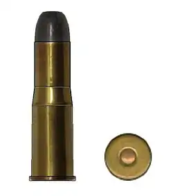 The .45-75 Winchester / 11.62x48mmR Centennial is an intermediate centerfire rifle cartridge developed in 1876 for the newly designed Winchester Model 1876 Centennial lever-action rifle. Winchester Repeating Arms Company introduced the rifle and cartridge at the United States Centennial Exposition. The Model 1876 rifle used an enlarged version of the famous Winchester Model 1873 action to offer a lever-action repeating rifle using cartridges suitable for big-game hunting. The cartridge and rifle enjoyed brief popularity with Gilded Age American hunters including Theodore Roosevelt, and was issued to the Canadian North-West Mounted Police and to Texas Rangers.[4]