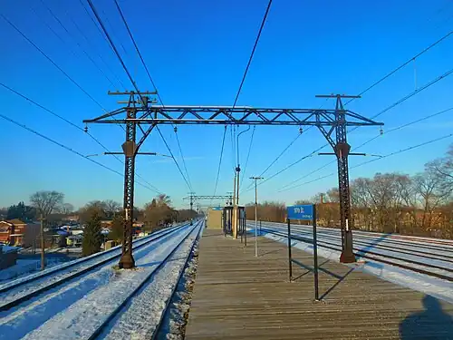 The station consists of a wooden platform between the tracks over a bridge with street-level connections. No parking is available at the station; however, there is a connection to two of the Chicago Transit Authority's bus routes.