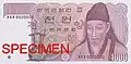 22. ^ a b "Brief History of current Korea notes in circulation; 1,000 won note". Bank of Korea. Archived from the original (Flash and HTML) on September 27, 2007. Retrieved November 9, 2006.
