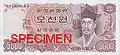 21. ^ a b c "Brief History of current Korea notes in circulation; 5,000-won note". Bank of Korea. Archived from the original (Flash and HTML) on September 27, 2007. Retrieved November 9, 2006.