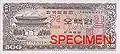 Reeded Stalk of rice, value (hangul) Value (digit), bank title (hangul), year of minting 1972 December 1, 1972 Still circulating Series I ()