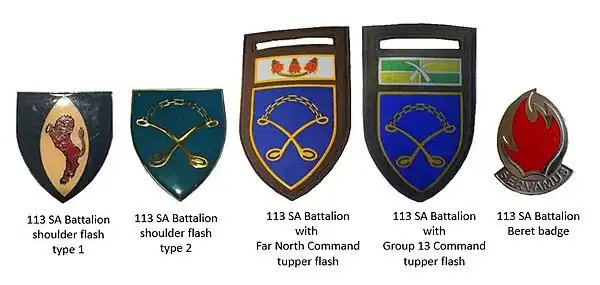 113 Battalion was raised in 1980 at Phalaborwa in the then Eastern Transvaal.[2] Troops for 113 SA Battalion were recruited from the self-governing territory of Gazankulu.