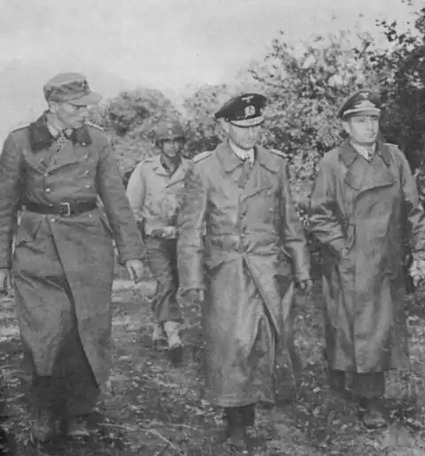 General Middleton confers with General Simpson (left) and General Stroh (right) near Brest
