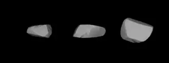 Other observations at the Palomar Transient Factory in California, and by a collaboration of Hungarian astronomers gave a period of 8.628 and 5 hours with an amplitude of 0.36 and 0.4 magnitude, respectively (U=2/2).[13][10] In 2013, an international study modeled a lightcurve with a concurring period of 8.63043±0.00005 hours and found two spin axis of (214.0°, 62.0°) and (64.0°, 60.0°) in ecliptic coordinates (λ, β) (Q=2).[9]