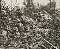 The 132nd Infantry Regiment was organized from other Illinois militia units, namely the 2nd and 7th Infantry Regiments, and activated on 21 July 1917.[2] Assigned to the 33rd Infantry Division, it was redesignated on 12 October 1917 as the 132nd Infantry Regiment and trained at Camp Logan, Texas. Sent overseas in May 1918, the 132nd participated in the Battle of Hamel, the Meuse-Argonne Offensive, and the 1918 Somme offensive.