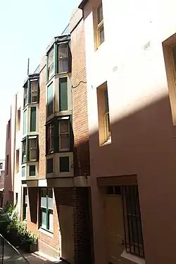 Commencing in the late 1970s and continuing through the 1980s the then Sydney Cove Redevelopment Authority (SCRA) undertook a programme of restoration and reconstruction of the premises at no. 139–141 George Street. These alterations also included the construction of the premises at the rear of 139–141 George Street, known as 30–32 Nurses Walk. Contemporary with the SCRA alterations, further alterations and additions were undertaken over the 1980s. This work was prepared for the proprietors of The Russell Hotel by Ron Vickery architect, and included in 1984 a new development at 30–32 Nurses Walk, which was completed in the mid 1980s and provided the additional rooms and connections with the neighbouring premises under the joint The Russell Hotel lease.[1]