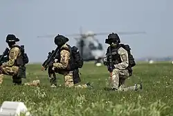 The Regiment has also been employed in public order tasks, providing service in the event of events of national importance such as street demonstrations or football matches, as well as disasters and other critical issues.[3]