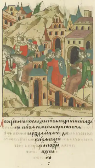 ![]() Vasili Nozdorovaty in the Illustrated Chronicle of Ivan the Terrible (16th century) | |||||||||