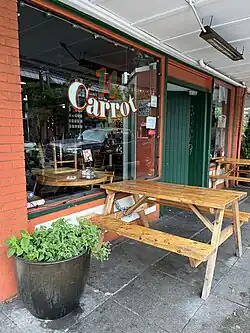 14 Carrot Cafe is a family-operated restaurant serving American cuisine[3] for breakfast and lunch in the Hines Public Market Building on Eastlake Avenue, near the intersection with East Lynn Street,[4] in Seattle's Eastlake neighborhood.[5] The Infatuation's Aimee Rizzo has described 14 Carrot Cafe as a diner and a greasy spoon that is "charming in a nothing's-been-updated-since-1977 kind of way, based on the old photo collages, vintage dining tables, and coin-operated Runts dispensers that definitely nobody uses".[6] The menu has included biscuits and gravy, cinnamon rolls, egg dishes, "Tahitian" French toast with tahini,[7] crab cake benedicts, hash browns, carrot cake and carrot pancakes, as well as mimosas[6] and carrot juice.[5]