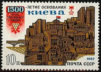 The 1500th anniversary of Kiev, the capital of the Ukrainian SSR, was an event held in 1982.[1][2][3] Although archaeologists have found evidence that Kiev (present-day Kyiv) was founded in either the 6th or 7th century, and the settlement may have been mentioned in documents more than two millennia ago, the observance of the 1500th anniversary in 1982 is based on a now traditional founding date of AD 482 for the city.[4][5]