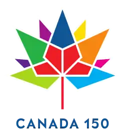 Official emblem of Canada 150, a stylized maple leaf with 13 diamonds representing provinces and territories. The four red diamonds represent provinces at confederation