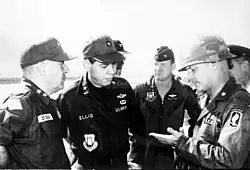 The brigade arrived in South Vietnam on 7 May 1965, the first major ground combat unit of the United States Army to serve in the country.[3][23][24][25][26][27] Williamson boldly predicted on arrival that his men would defeat the Viet Cong (VC) quickly and that they "would be back in Okinawa by Christmas".[21] The 1st Brigade, 101st Airborne Division; the 2nd Brigade, 1st Infantry Division; and the 1st Cavalry Division quickly followed the 173rd into Vietnam, the first of what would eventually be 25 U.S. Army brigades to serve in the country.[22][27] As larger US Army commands were established in Vietnam, the brigade was assigned to the III Corps and II Corps tactical zone, which they would serve in for the next six years.[28] The brigade was put under the command of II Field Force, Vietnam.[29]