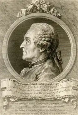- ^ Blangstrup, Chr., ed. (1916). "Condamine, Charles Marie de la". Salmonsens Konversationsleksikon (in Danish). Vol. 5 (2 ed.). Copenhagen: J.H. Schultz Forlagsboghandel. p. 169. Retrieved 17 August 2015.