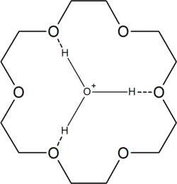 - ^ Atwood, Jerry L.; Bott, Simon G.; Coleman, Anthony W.; Robinson, Kerry D.; Whetstone, Stephen B.; Means, C. Mitchell (December 1987). "The oxonium cation in aromatic solvents. Synthesis, structure, and solution behavior of [H3O+·18-crown-6][Cl-H-Cl]". Journal of the American Chemical Society. 109 (26): 8100–8101. doi:10.1021/ja00260a033.